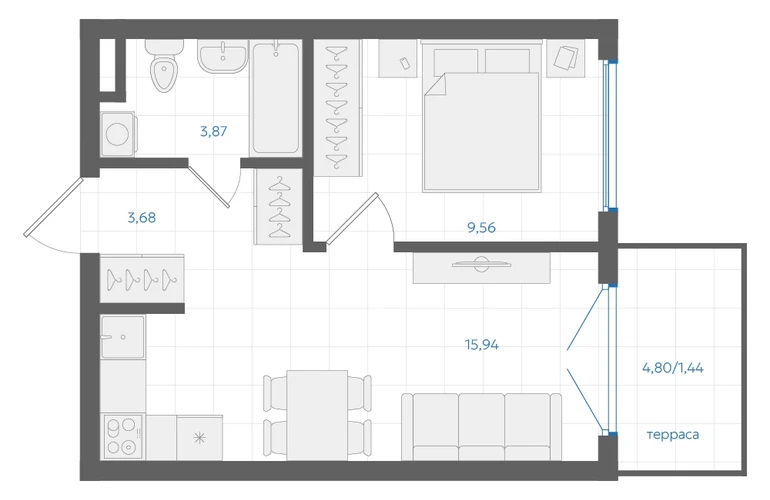 • Жилая площадь9.56