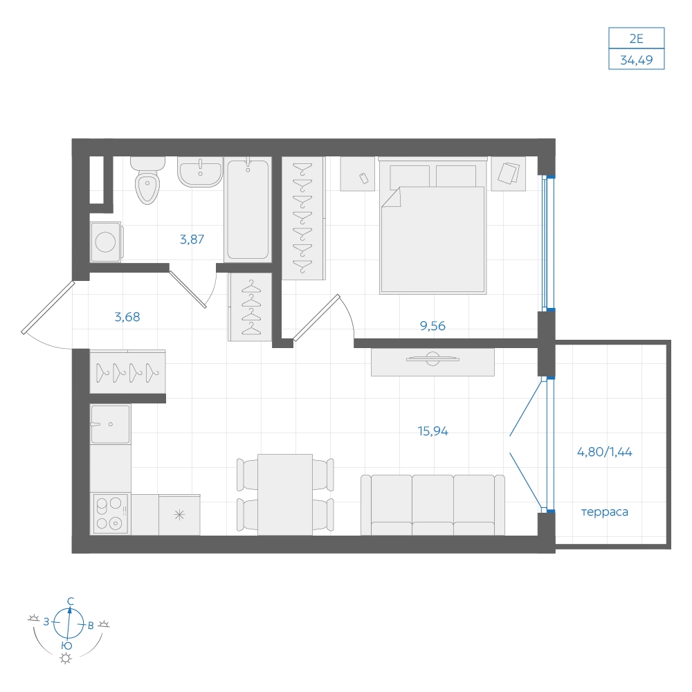 • Общая площадь34.49