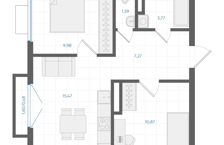 • Общая площадь49.43