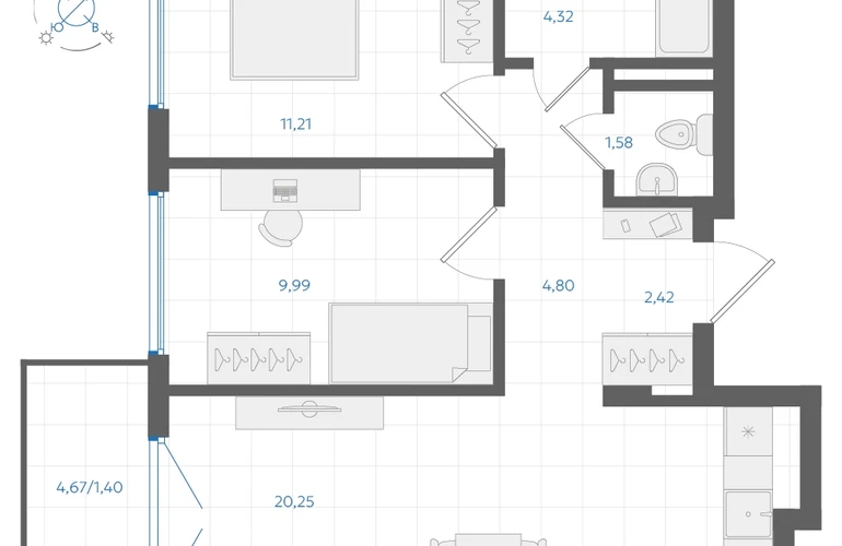 • Жилая площадь21.20