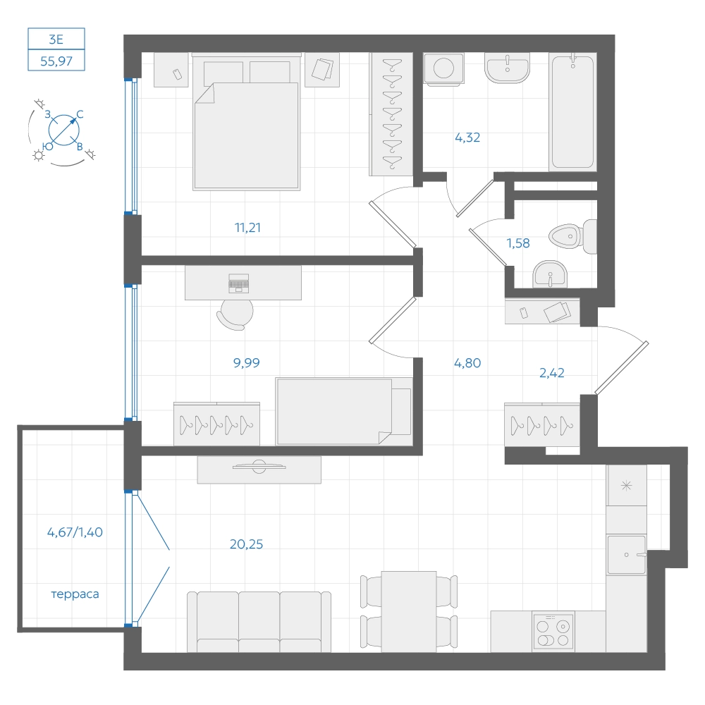 • Общая площадь55.97