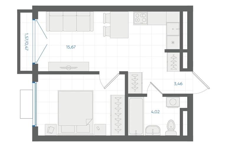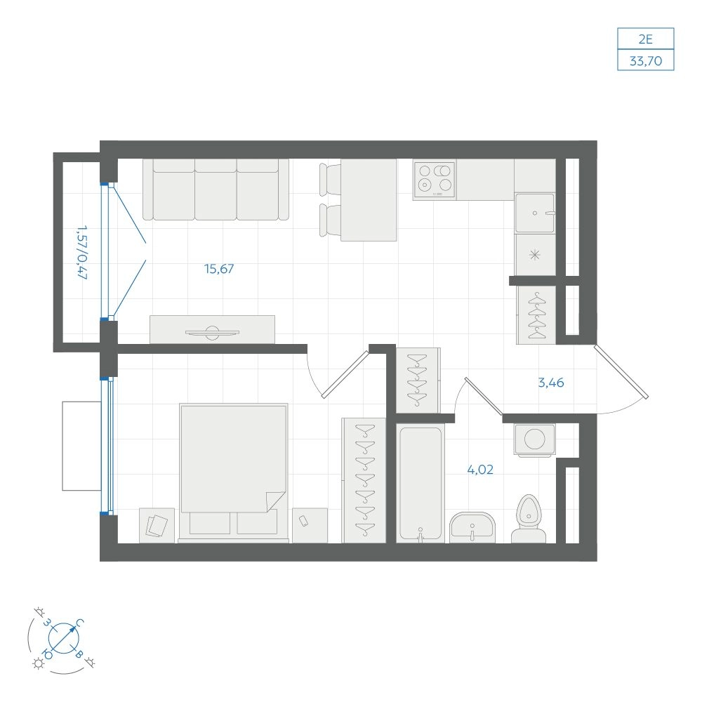 • Общая площадь33.70