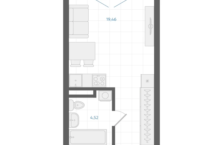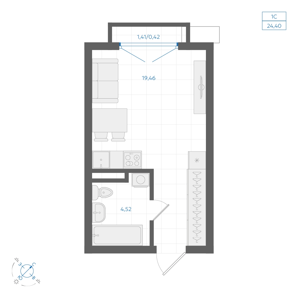 Студия, 24.40 кв.м., 2/4эт.