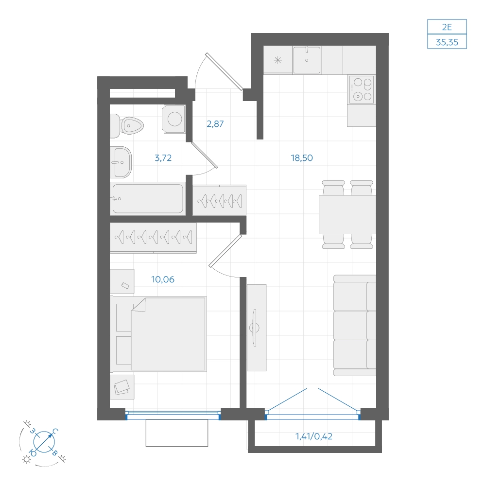 • Общая площадь35.35