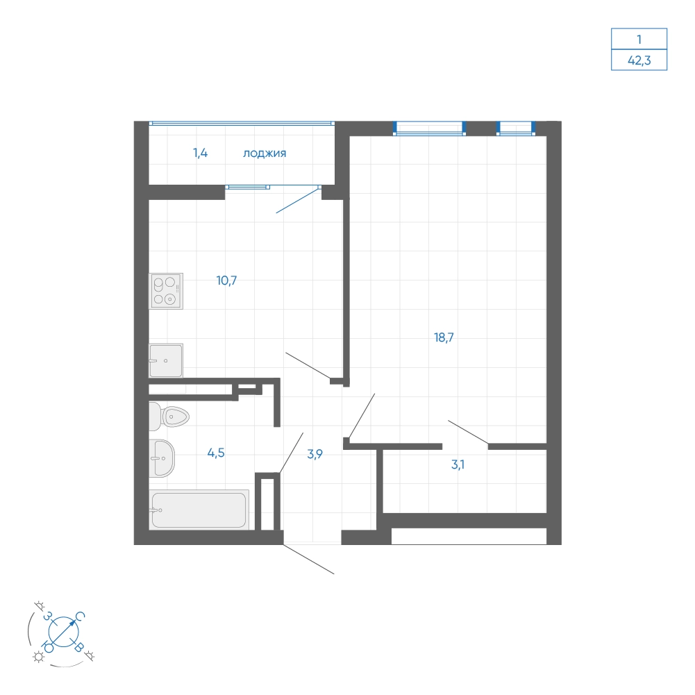 • Общая площадь42.30