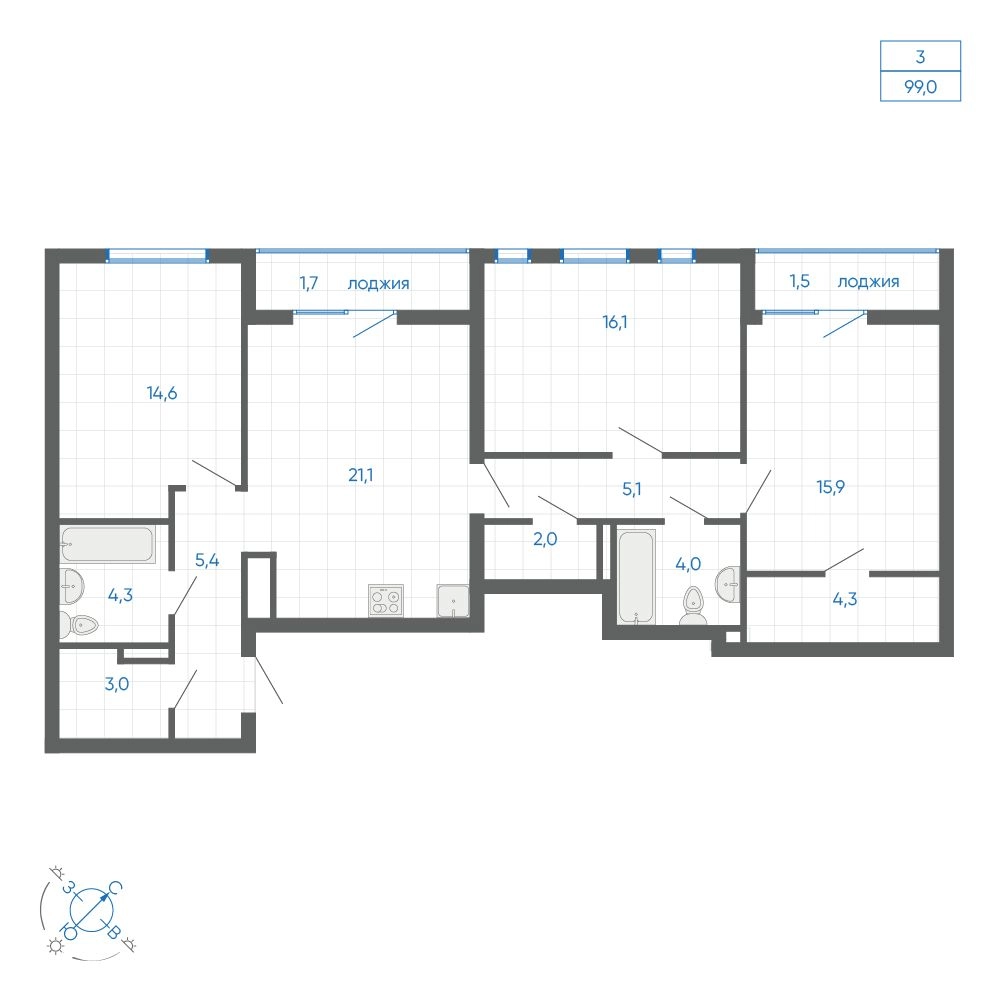 • Общая площадь99.00