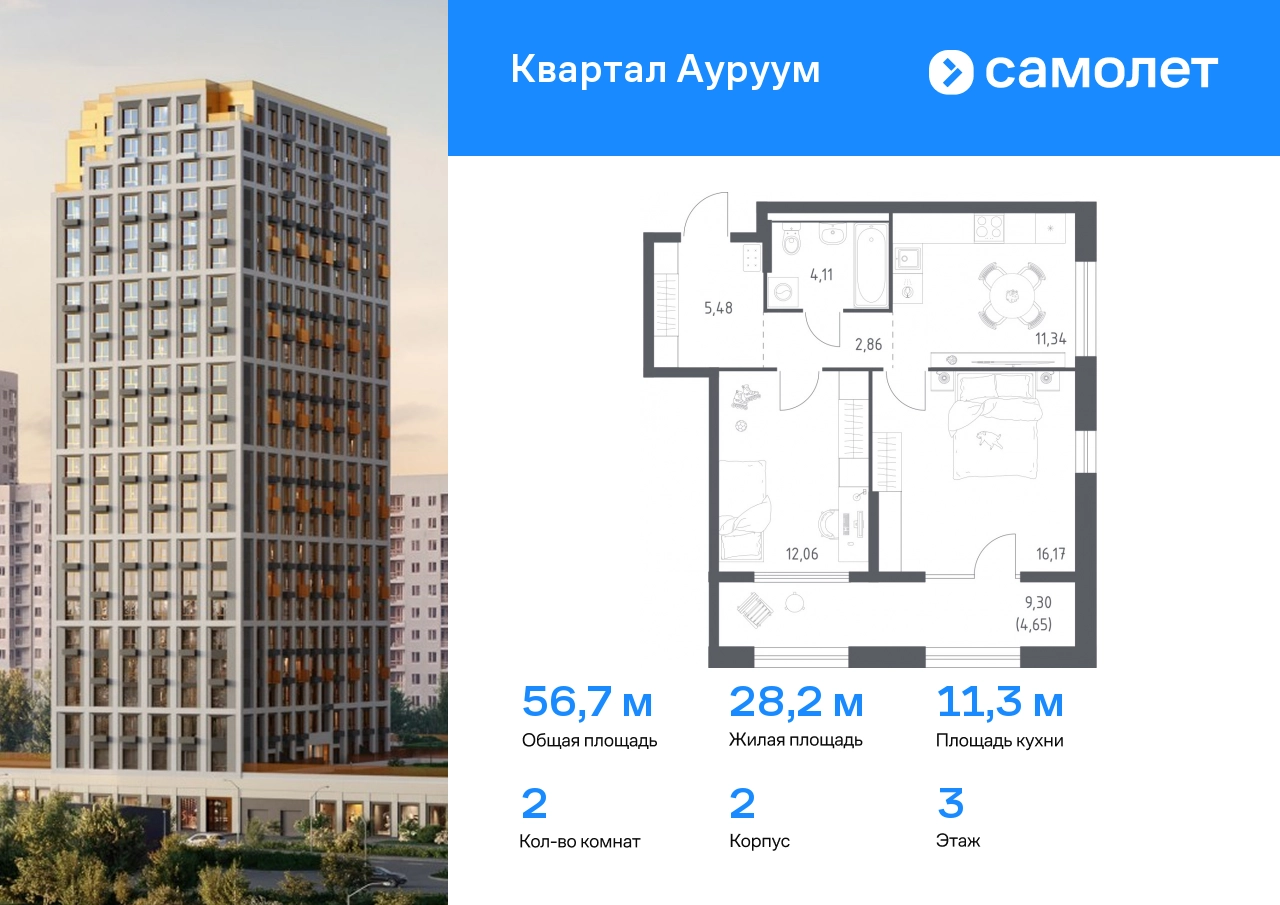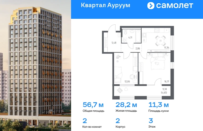 Строим кварталы для жизни с заботой о будущем. Предлагается 2-комнатная квартира бизнес-класса 55,4 кв.м в корпусе 2 на 3 этаже, в ЖК «Квартал Ауруум» Квартира с предчистовой отделкой. Доступность дополнительных опций уточняйте у застройщика. Приобрести квартиру возможно по специальным акциям от застройщика, с текущими условиями акций можно ознакомиться в блоке «Акций». Цена динамическая и может отличаться, уточняйте актуальность у застройщика. «Квартал Ауруум» — это море зелени под вашими окнами и жизнь в уютном квартале с собственной инфраструктурой. До центра города — всего 15 минут на авто. Жилой квартал находится в развитом районе, где все необходимое рядом — свой детский сад, магазины, кафе и школа — через дорогу. 4 разновысотных корпуса, от 14 до 31 этажа, дарят ощущение простора и много естественного света в квартирах. Для неспешных прогулок - приватный двор-сад или Основинский парк у подножия комплекса. Для авто — подземный паркинг. Все квартиры с предчистовой отделкой.#yan19-2r1790558#О застройщике