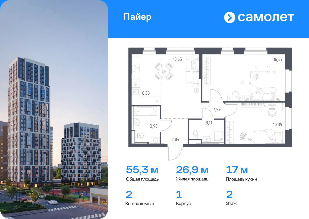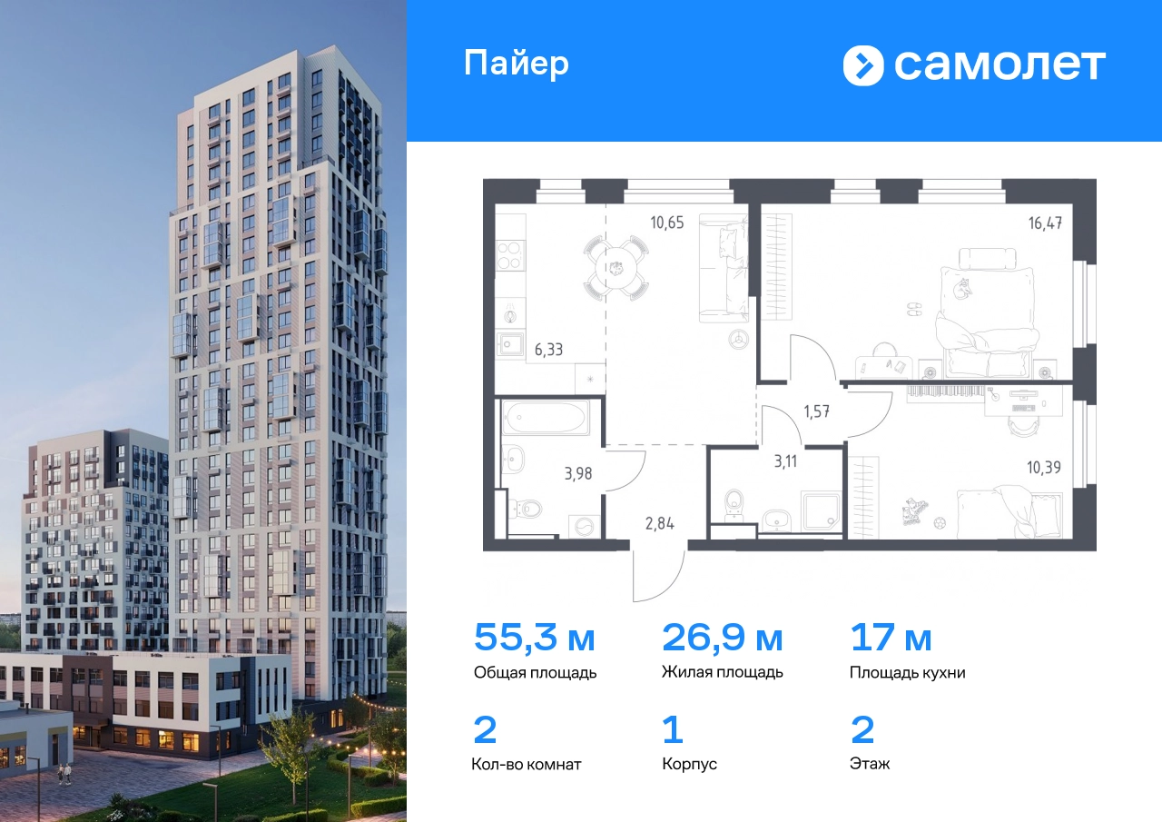 Строим кварталы для жизни с заботой о будущем. Предлагается 2-комнатная квартира комфорт-класса 55,34 кв.м в корпусе 1 на 2 этаже, в ЖК «Пайер» Квартира с предчистовой отделкой. Доступность дополнительных опций уточняйте у застройщика. Приобрести квартиру возможно по специальным акциям от застройщика, с текущими условиями акций можно ознакомиться в блоке «Акций». Цена динамическая и может отличаться, уточняйте актуальность у застройщика. В жилом квартале «Пайер» мы сохранили уютную и беззаботную атмосферу. До центра Екатеринбурга — 15 минут на авто. Всего 20 минут прогулки - до большого парка на берегу реки Исеть и Ольховского пруда. Рядом работают детские сады, школа, магазины, пункты выдачи, аптеки и кафе. В приватном зеленом дворе-парке есть спортивная и игровая зона. Лаконичные фасады с открытыми террасами выглядят выразительно. Квартиры с предчистовой отделкой.#yan19-2r1769647#О застройщике