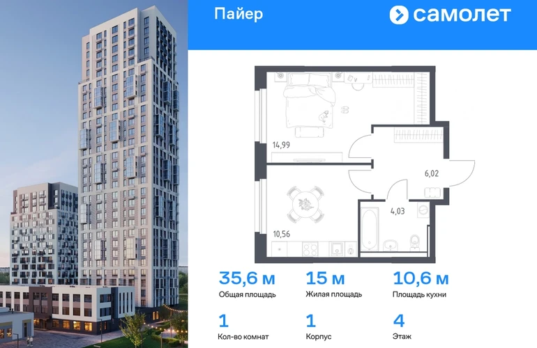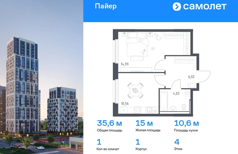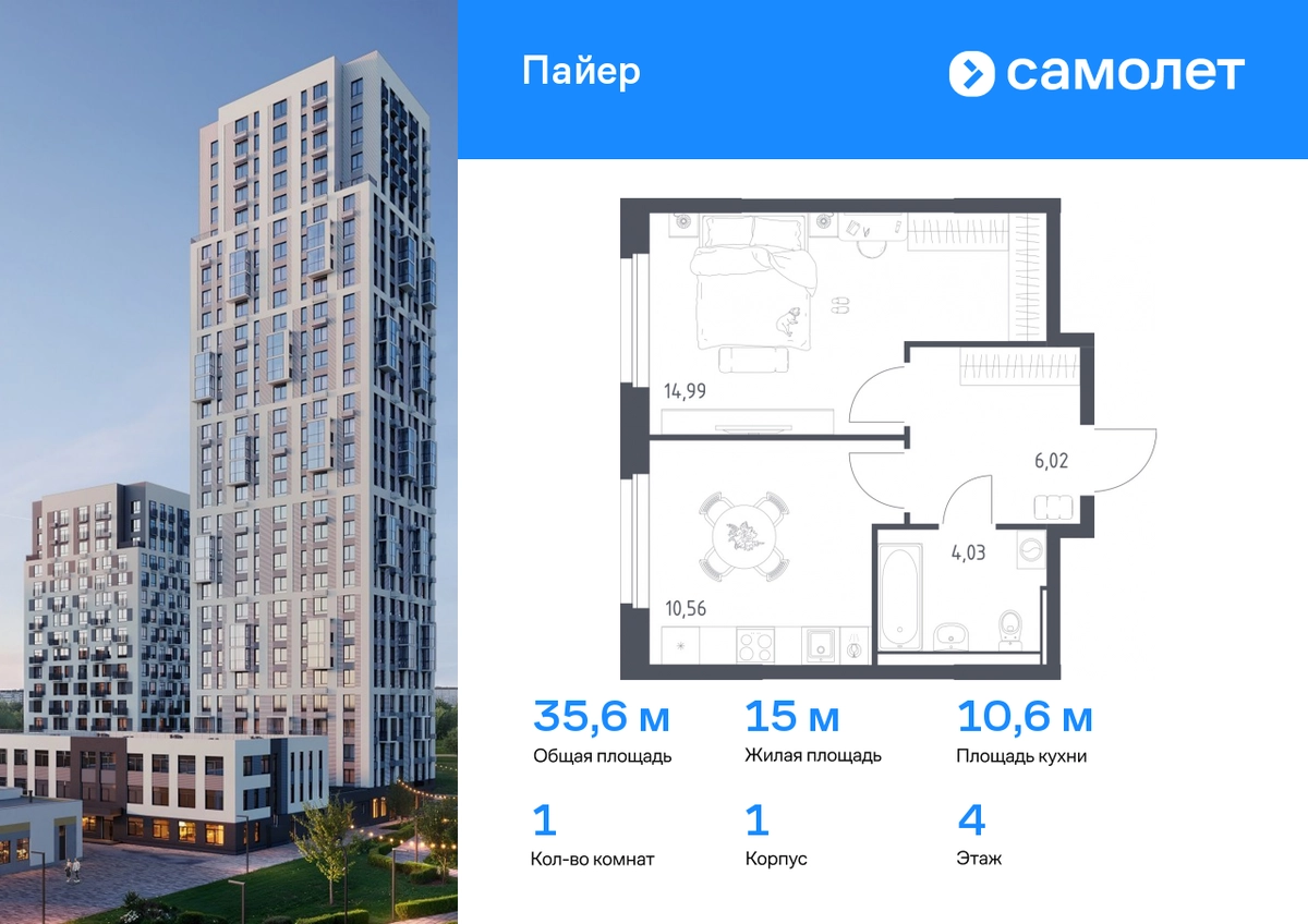 Строим кварталы для жизни с заботой о будущем. Предлагается 1-комнатная квартира комфорт-класса 35,6 кв.м в корпусе 1 на 4 этаже, в ЖК «Пайер» Квартира с предчистовой отделкой. Доступность дополнительных опций уточняйте у застройщика. Приобрести квартиру возможно по специальным акциям от застройщика, с текущими условиями акций можно ознакомиться в блоке «Акций». Цена динамическая и может отличаться, уточняйте актуальность у застройщика. В жилом квартале «Пайер» мы сохранили уютную и беззаботную атмосферу. До центра Екатеринбурга — 15 минут на авто. Всего 20 минут прогулки - до большого парка на берегу реки Исеть и Ольховского пруда. Рядом работают детские сады, школа, магазины, пункты выдачи, аптеки и кафе. В приватном зеленом дворе-парке есть спортивная и игровая зона. Лаконичные фасады с открытыми террасами выглядят выразительно. Квартиры с предчистовой отделкой.#yan19-2r1769653#О застройщике