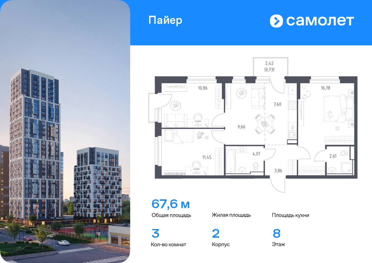 Строим кварталы для жизни с заботой о будущем. Предлагается 3-комнатная квартира комфорт-класса 67,56 кв.м в корпусе 2 на 8 этаже, в ЖК «Пайер» Квартира с предчистовой отделкой. Доступность дополнительных опций уточняйте у застройщика. Приобрести квартиру возможно по специальным акциям от застройщика, с текущими условиями акций можно ознакомиться в блоке «Акций». Цена динамическая и может отличаться, уточняйте актуальность у застройщика. В жилом квартале «Пайер» мы сохранили уютную и беззаботную атмосферу. До центра Екатеринбурга — 15 минут на авто. Всего 20 минут прогулки - до большого парка на берегу реки Исеть и Ольховского пруда. Рядом работают детские сады, школа, магазины, пункты выдачи, аптеки и кафе. В приватном зеленом дворе-парке есть спортивная и игровая зона. Лаконичные фасады с открытыми террасами выглядят выразительно. Квартиры с предчистовой отделкой.#yan19-2r1770111#О застройщике