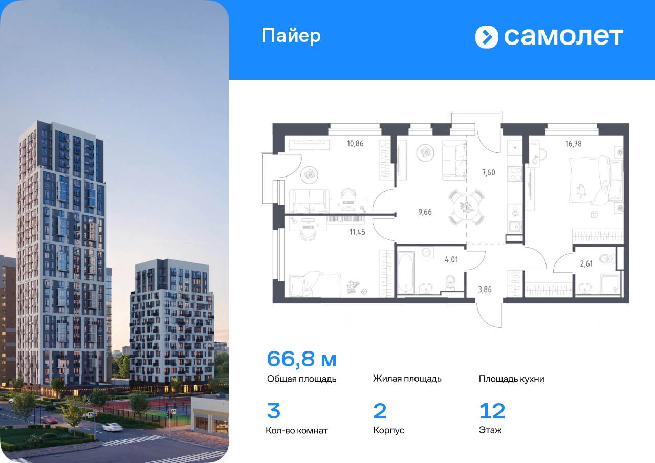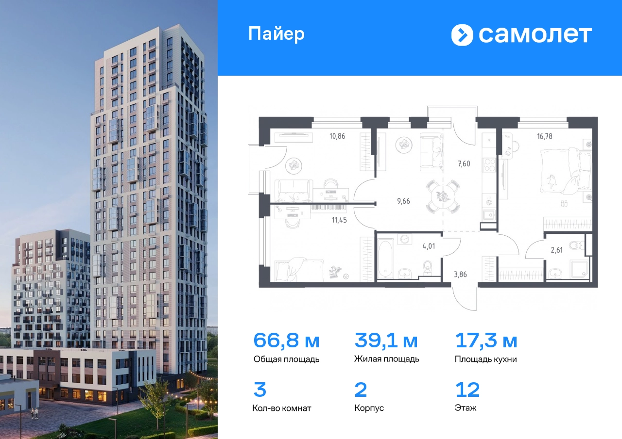 Строим кварталы для жизни с заботой о будущем. Предлагается 3-комнатная квартира комфорт-класса 66,83 кв.м в корпусе 2 на 12 этаже, в ЖК «Пайер» Квартира с предчистовой отделкой. Доступность дополнительных опций уточняйте у застройщика. Приобрести квартиру возможно по специальным акциям от застройщика, с текущими условиями акций можно ознакомиться в блоке «Акций». Цена динамическая и может отличаться, уточняйте актуальность у застройщика. В жилом квартале «Пайер» мы сохранили уютную и беззаботную атмосферу. До центра Екатеринбурга — 15 минут на авто. Всего 20 минут прогулки - до большого парка на берегу реки Исеть и Ольховского пруда. Рядом работают детские сады, школа, магазины, пункты выдачи, аптеки и кафе. В приватном зеленом дворе-парке есть спортивная и игровая зона. Лаконичные фасады с открытыми террасами выглядят выразительно. Квартиры с предчистовой отделкой.#yan19-2r1770113#О застройщике