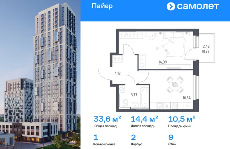 Строим кварталы для жизни с заботой о будущем. Предлагается 1-комнатная квартира комфорт-класса 33,55 кв.м в корпусе 2 на 9 этаже, в ЖК «Пайер» Квартира с предчистовой отделкой. Доступность дополнительных опций уточняйте у застройщика. Приобрести квартиру возможно по специальным акциям от застройщика, с текущими условиями акций можно ознакомиться в блоке «Акций». Цена динамическая и может отличаться, уточняйте актуальность у застройщика. В жилом квартале «Пайер» мы сохранили уютную и беззаботную атмосферу. До центра Екатеринбурга — 15 минут на авто. Всего 20 минут прогулки - до большого парка на берегу реки Исеть и Ольховского пруда. Рядом работают детские сады, школа, магазины, пункты выдачи, аптеки и кафе. В приватном зеленом дворе-парке есть спортивная и игровая зона. Лаконичные фасады с открытыми террасами выглядят выразительно. Квартиры с предчистовой отделкой.#yan19-2r1824479#О застройщике