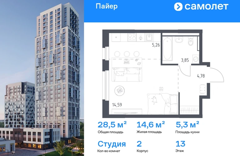 Строим кварталы для жизни с заботой о будущем. Предлагается квартира студия комфорт-класса 28,48 кв.м в корпусе 2 на 13 этаже, в ЖК «Пайер» Квартира с предчистовой отделкой. Доступность дополнительных опций уточняйте у застройщика. Приобрести квартиру возможно по специальным акциям от застройщика, с текущими условиями акций можно ознакомиться в блоке «Акций». Цена динамическая и может отличаться, уточняйте актуальность у застройщика. В жилом квартале «Пайер» мы сохранили уютную и беззаботную атмосферу. До центра Екатеринбурга — 15 минут на авто. Всего 20 минут прогулки - до большого парка на берегу реки Исеть и Ольховского пруда. Рядом работают детские сады, школа, магазины, пункты выдачи, аптеки и кафе. В приватном зеленом дворе-парке есть спортивная и игровая зона. Лаконичные фасады с открытыми террасами выглядят выразительно. Квартиры с предчистовой отделкой.#yan19-2r1825389#О застройщике